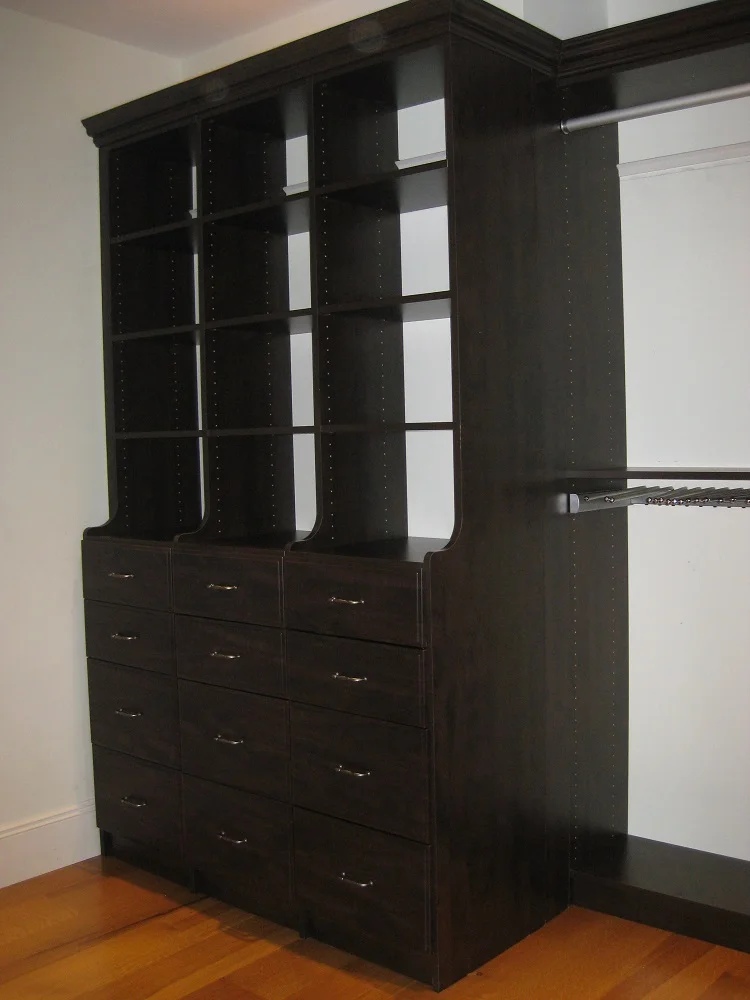 Although most of our closets are made out of a system similar to California closets style, when the requirements are for high end designer closet, we can custom fabricate and transform your walk in closet into a high end luxury closet.